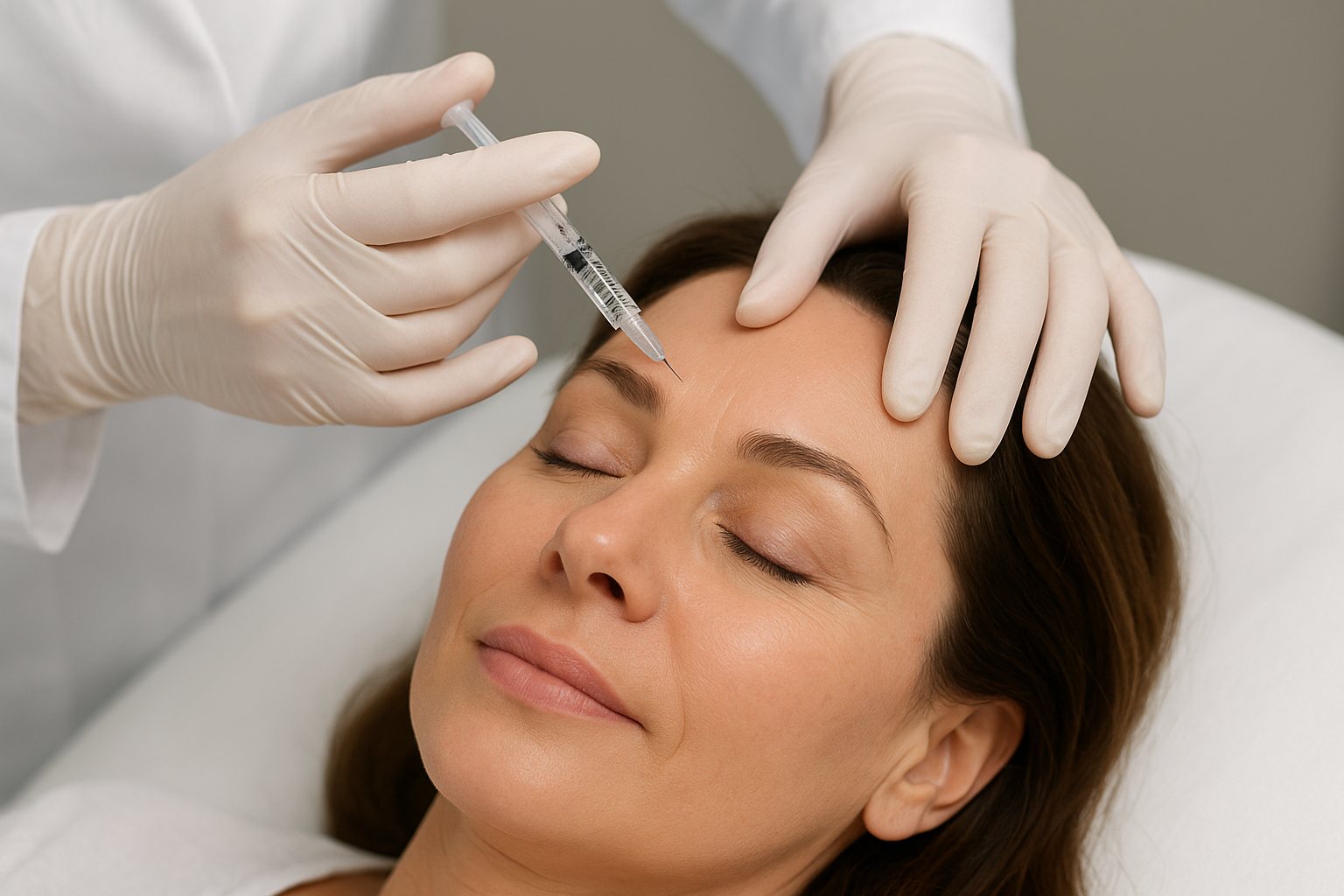Aplicação precisa de botox para suavizar linhas de expressão.